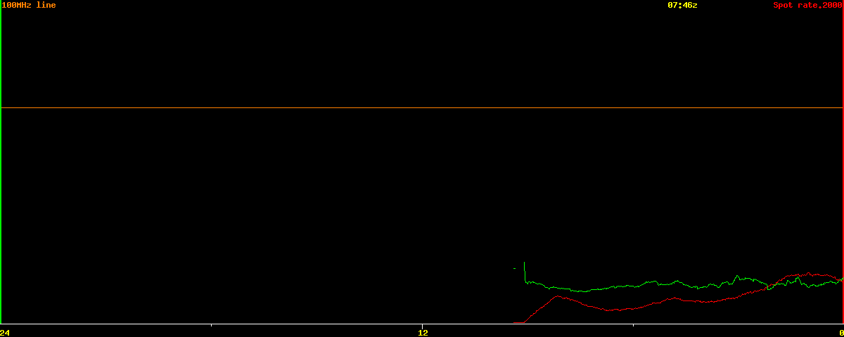 MUF History and Spot Rate over the last 24 hours. Orange line signifies 30MHz